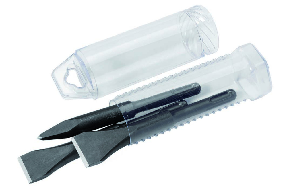 Набор зубил SDS-Plus, длина 140 мм, очень короткая форма, применение в ограниченном пространстве, содержимое: зубило пикообразное, плоское (20 мм) и плоское широкое (30 мм), высококачественная термообработанная сталь 45SiCrV6, для большого срока службы, благодаря форме и геометрии режущих кромок высокая производительность долбления, возможна последующая подточка и ковка. Сделано в Германии.