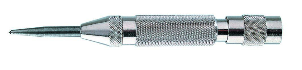 Кернер автоматический 180N-250N, автоматная сталь, автоматический удар, направляющая, сменный закалённый наконечник, регулировка силы удара, никелированный. Сделано в Германии.