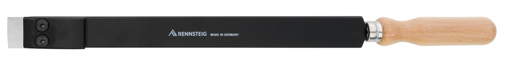 Шабер, твёрдосплавный, плоский 300x20x5 мм, легированная инструментальная сталь, сменная твердосплавная пластина с 4 режущими кромками, стержень окрашенный, деревянная ручка. Сделано в Германии.