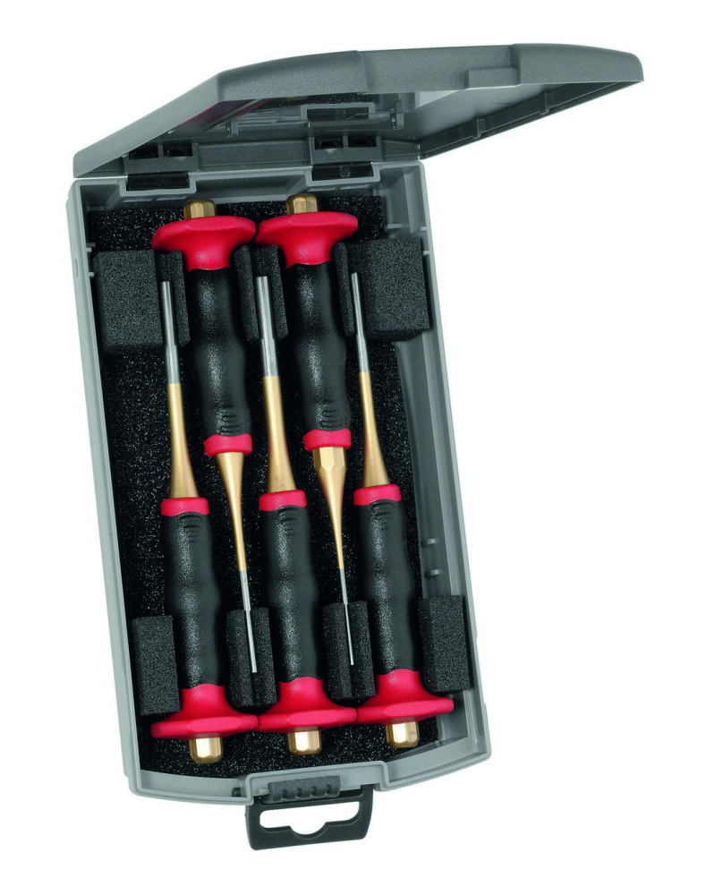 Набор выколоток, восьмигранное сечение, протектор, полированные, безопасная ударная головка, специальная инструментальная сталь, закалённая, окрашенная, содержимое: размеры 2, 3, 4, 5, 6, 8 мм. Сделано в Германии.