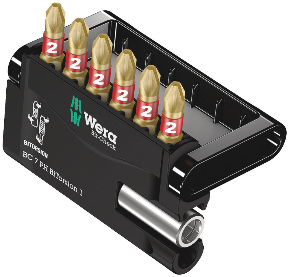 1 универсальный держатель с втулкой из нержавеющей стали и сильным постоянным магнитом, 6 битов BiTorsion для длительного срока службы, сверхтвердое исполнение. В наборах Bit-Check с идентификаторами „Take it easy" биты снабжены метками, которые благодаря своему цвету и указанию размера делают отбор нужного бита быстрым и легким.