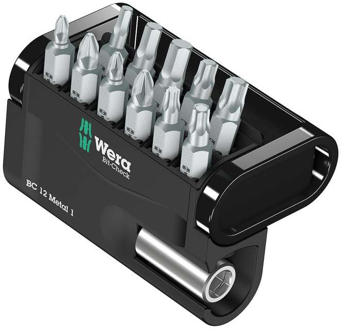 Набор в прочном футляре Bit-Check фирмы Wera. Наборы Bit-Check обеспечивают полный обзор всех размещённых инструментов. Лишние в работе биты просто возвращаются на свое место в футляре, чтобы не потерялись. Простая переноска, например, в кармане рубашки. Набор включает универсальный держатель с сильным постоянным магнитом для битов с шестигранным хвостовиком 1/4". Для установки в шуруповерт или патрон электродрели. С возможностью вертикального размещения многокомпонентный футляр Bit-Check для долговременного надёжного хранения битов.