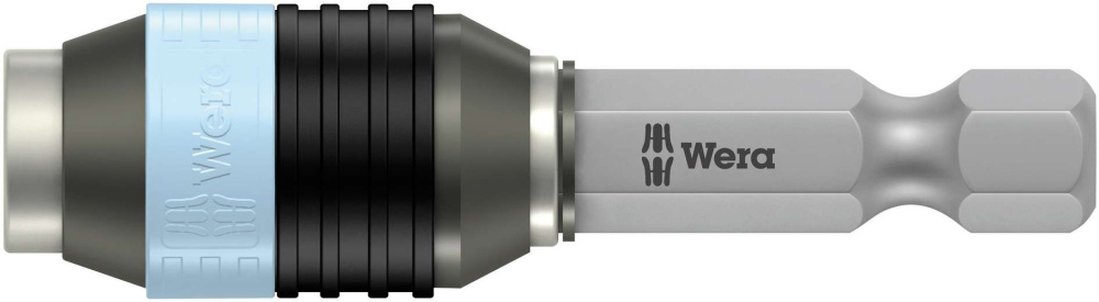 Универсальный держатель для битов с шестигранным хвостовиком 1/4" по стандарту DIN ISO 1173-C 6,3 и E 6,3 (ISO 1173). Из специальной стали, что исключает распространение контактной ржавчины. Технология Rapidaptor позволяет ставить биты даже без использования гильзы. Извлечение битов осуществляется простым сдвиганием гильзы вперед - моментальная смена битов даже одной рукой. Шестигранный хвостовик 1/4", подходит для шуруповертов с патроном по стандарту DIN ISO 1173-F 6,3.