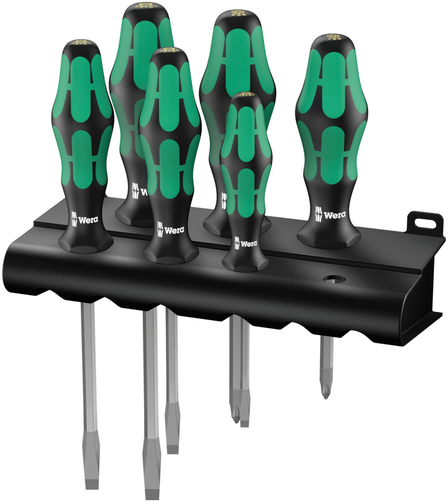 | Описание артикула | Набор из 6 отверток с ручкой Kraftform Plus для комфортной работы без появления на руках мозолей и волдырей. Твердые зоны ручки для высокой скорости работы, в то время как мягкие зоны ручки обеспечивают передачу больших моментов силы. Наконечник Lasertip надёжно вгрызается в головку винта и предотвращает выскальзывание. Наличие шестигранного стержня и вспомогательного шестигранника помогает с помощью рожкового или накидного ключа передавать больший момент силы. Шестигранный край ручки предотвращает надоедливое перекатывание отвёртки на рабочем месте. С маркировкой ручки для облегчённого отбора и сортировки инструментов. Набор включает практичную подставку для удобного размещения отвёрток. |