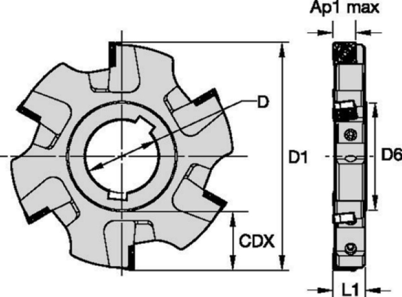| SAP Material Number | ISO Catalog Number | [D1] Effective Cutting Diameter | Max RPM | Number of Inserts | Weight Kilograms | [CDX] Radial Maximum Depth of Cut | [L1] Gage Length | [D] Adapter / Shank / Bore Diameter | [D6] Hub Diameter | [AP1MAX] 1st Maximum Cutting Depth | Number of Effective Cutting Edges on Face | [THUB] Hub Thickness | [V] Adjustment Range |