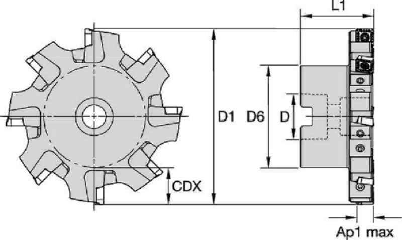 | SAP Material Number | ISO Catalog Number | [D1] Effective Cutting Diameter | Max RPM | Number of Inserts | Weight Kilograms | [CDX] Radial Maximum Depth of Cut | [L1] Gage Length | [D] Adapter / Shank / Bore Diameter | [D6] Hub Diameter | [AP1MAX] 1st Maximum Cutting Depth | Number of Effective Cutting Edges on Face | [V] Adjustment Range |