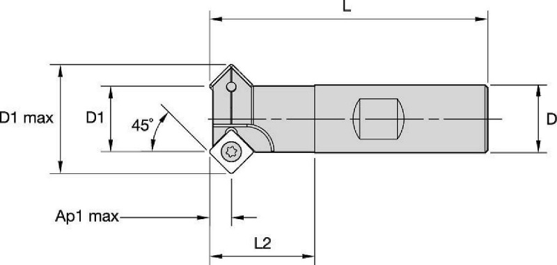 Фреза для обработки фасок; Концевые фрезы с углом в плане 45°; SD09; Метрическая система. Концевые фрезы. Фреза для обработки фасок