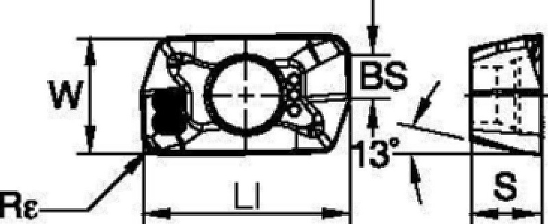 | SAP Material Number | ISO Catalog Number | [W] Insert Width | [BS] Corner Facet Length | [Rε] Corner Radius | Average Chip Thickness [HM] | Cutting Edges per Insert | [S] Insert Thickness | [LI] Insert Length |