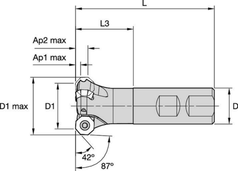 | SAP Material Number | ISO Catalog Number | [D1] Effective Cutting Diameter | [L] Overall Length | [L2] Head Length | [D1MAX] Maximum Cutting Diameter | Weight Pounds | Maximum Ramping Angle | [Z] Number of Flutes | Max RPM | Number of Inserts | [D] Adapter / Shank / Bore Diameter | [AP1MAX] 1st Maximum Cutting Depth |