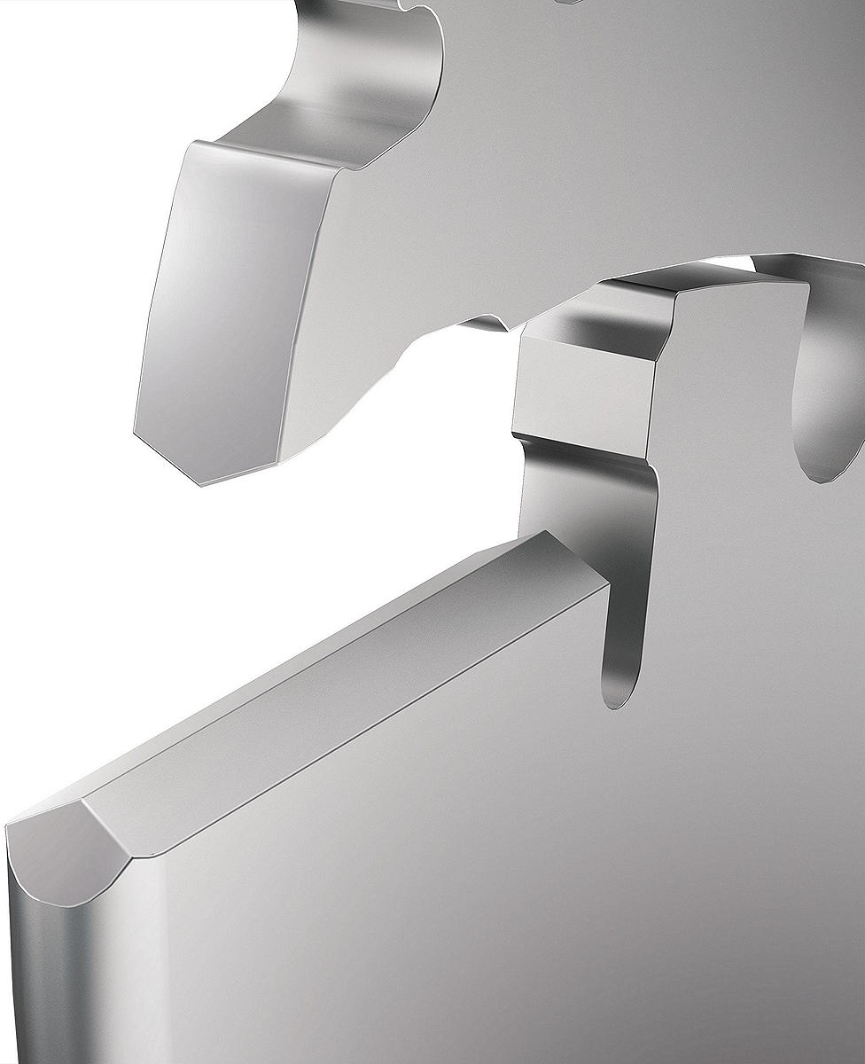 - Двойная V-образная геометрия пластины обеспечивает повышенную надежность крепления пластины в посадочном гнезде и минимизирует радиальное биение.
