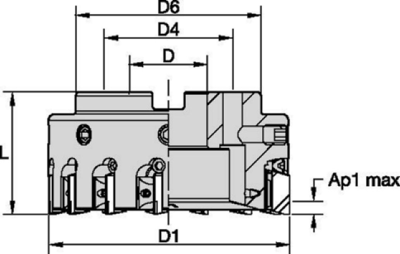 | SAP Material Number | ISO Catalog Number | [D1] Effective Cutting Diameter | [L] Overall Length | [D] Adapter / Shank / Bore Diameter | [D6] Hub Diameter | Max RPM | Number of Inserts | [D4] Bolt Circle 4 | Weight Kilograms | Number of Adjustable Inserts |