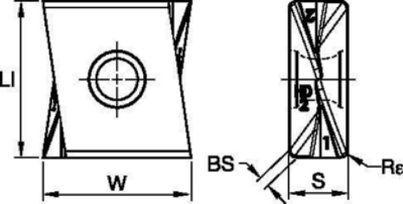 | SAP Material Number | ISO Catalog Number | [W] Insert Width | [BS] Corner Facet Length | [Rε] Corner Radius | Average Chip Thickness [HM] | Cutting Edges per Insert | [S] Insert Thickness | [LI] Insert Length |