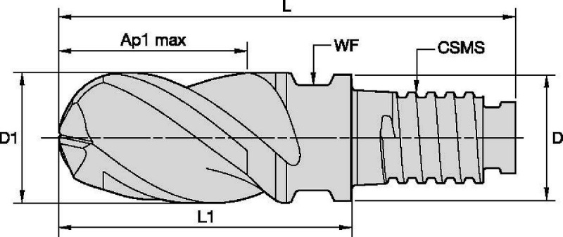 | SAP Material Number | ISO Catalog Number | [D1] Effective Cutting Diameter | [L] Overall Length | [D] Adapter / Shank / Bore Diameter | Adapter Style Machine Side | [L1] Gage Length | [AP1MAX] 1st Maximum Cutting Depth | [CSMS] System Size Machine Side | [Z] Number of Flutes | [WF] Width of Flat |