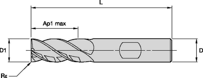 | SAP Material Number | ISO Catalog Number | [D1] Effective Cutting Diameter | [D] Adapter / Shank / Bore Diameter | [L] Overall Length | Adapter Style Machine Side | [AP1MAX] 1st Maximum Cutting Depth | [Z] Number of Flutes | [Re] Corner Radius |