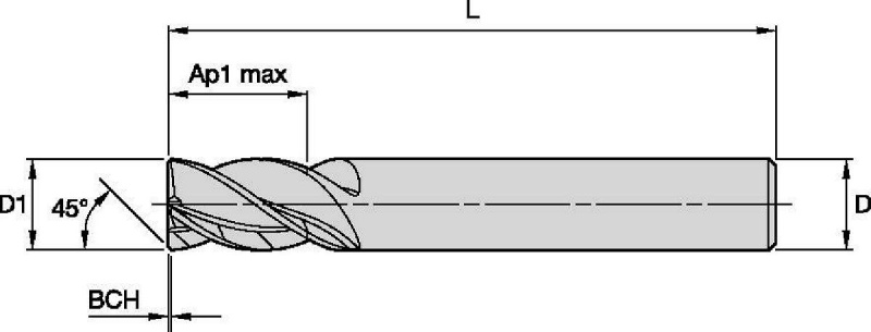 Цилиндрический хвостовик. HARVI I TE; С фаской; 4 ЗУБА; УКОРОЧЕННОЕ ИСПОЛНЕНИЕ; Цилиндрический хвостовик. HARVI™ I TE High-Performance Solid Carbide End Mills