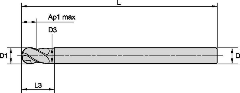 ЦИЛИНДРИЧЕСКИЙ ХВОСТОВИК. HARVI I TE; Сферическая вершина лезвия; 4 канавки; С шейкой; Хвостовик. HARVI™ I TE High-Performance Solid Carbide End Mills