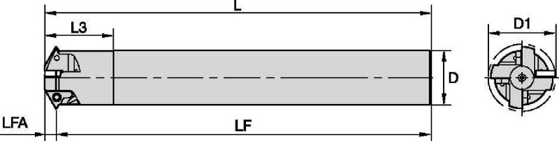| SAP Material Number | ISO Catalog Number | [D1] Effective Cutting Diameter | [L] Overall Length | [D] Adapter / Shank / Bore Diameter | [LF] Functional Length | [L3] Usable Length | [LFA] LF A Dimension | Max RPM | Number of Inserts |