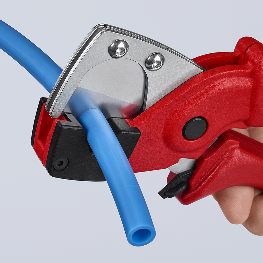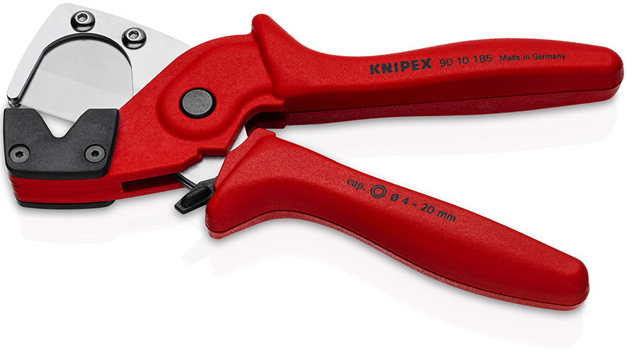 Идеальный рез: профессиональный труборез-ножницы с универсальной опорой для труб и шлангов. Идеальный выбор для всех распространенных многослойных шлангов, шлангов для жидкостей и пневматических шлангов и труб d 4-20 мм, используемых в различных областях применения. С универсальной опорой для установки под прямым углом. Не нагружает руки даже при длительной работе, благодаря малому усилию реза. Легко сменяемые ножи. С раскрывающей пружиной и блокировочной защелкой. Эргономичные рукоятки из армированного фиберглассом пластика. Не подходит для резки кабеля. Нож из высокопрочной специальной стали, закалка и отпуск в масле.