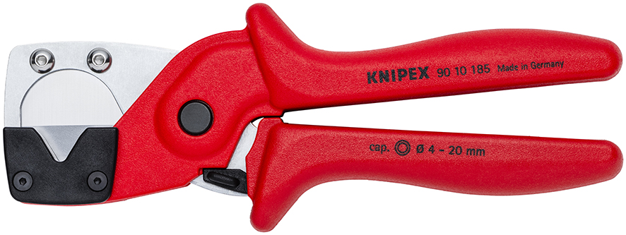 Идеальный рез: профессиональный труборез-ножницы с универсальной опорой для труб и шлангов. Идеальный выбор для всех распространенных многослойных шлангов, шлангов для жидкостей и пневматических шлангов и труб d 4-20 мм, используемых в различных областях применения. С универсальной опорой для установки под прямым углом. Не нагружает руки даже при длительной работе, благодаря малому усилию реза. Легко сменяемые ножи. С раскрывающей пружиной и блокировочной защелкой. Эргономичные рукоятки из армированного фиберглассом пластика. Не подходит для резки кабеля. Нож из высокопрочной специальной стали, закалка и отпуск в масле.