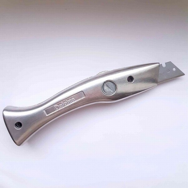 Нож «Дельфин» для резки напольных покрытий − это универсальный инструмент, который применяется в сфере строительства, ремонта, в быту, промышленности и на производстве. Его конструкция позволяет ровно обрезать линолеум, ПВХ и текстильные покрытия для пола. Нож оборудован магнитом в корпусе, что позволяет дополнительно зафиксировать лезвие. Благодаря этой особенности конструкции он обеспечивает максимально аккуратный и точный разрез без рваных краев. В качестве материала для ножа используется высокопрочный алюминий. Он не ржавеет, обладает большой устойчивостью к износу. Нож не тупится во время работы даже при длительной эксплуатации. Рукоятка имеет эргономичную форму, удобно лежит в руке и обеспечивает плотный захват ножа во время работы. Лезвия не входят в комплектацию и приобретаются отдельно. Можно легко заменить лезвие при необходимости. Нож легко открывается при помощи специального колесика. Надежно закрывается, обеспечивая безопасность во время работы.